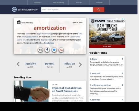 20 businessesThis is my homepage. It is a very extensive dictionary with a great thesaurus and much more: trivia, fact of the day, etc. It even has a hangman game you can pass hours with at work:)