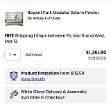 I was pleasantly surprised with how easy everything was to order and How quick everything was. Yesterday I got a surprise call that my furniture would be delivered today? And I placed my order last week! I'm sitting on my sofas now and we love them! They were also $600 cheaper than in the Ashley store!