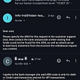 I deposited 5k last December which never came in my account and when i tried to call or mail the operator they keep on asking for ARN code(ARN code tracks debit or credit card transactions) but my transaction was UPI, I tried explaining this to them but they sent me this same email asking me to send ARN code even after explaining them bout this code. And when I call them they used to hang up saying hello. Hello. I cant hear you, thank you for call 1xbet. I got screenshot of the transaction and all the email conversation. I know it was their dodgy agent i sent money to but they just won't accept it's their fault.