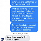 Note: Going forward we are not depositing any further amounts till the issue is resolved and if it is not resolved will be closing the account and advise all my mates to do the same. I do not have time to write emails on your negligence. You guys taking ages on responding