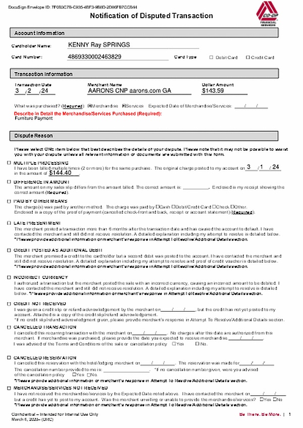 The bank said that if Aaron's refuses to fix the problem, come to the nearest branch and they will start a payment dispute to recover the funds from Aaron's. I'm going tomorrow.
