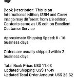 Being naive I paid $15 for expedited shipping and even contacted seller to confirm that book will be delivered within 3 business days and advised him to cancel my order if I cannot receive it within 3 business days. Got response from Malaysia that shipping speed is 3-10 business days. Contacted AbeBooks to initiate dispute, but that was a joke. They are running a scheme, of they are honest that most books are shipped from oversees and are unauthorized prints, they wouldn't be able to sell it to customers in the USA.