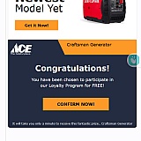 I entered a contest to win a generator and won, YAY! Paid shipping and handling and was told 3-7 days for arrival... 3 weeks later and still NOTHING. Ace Has done this before to me and I had really thought to give you another chance but NOPE!;;RAPED AGAIN WITH NO REACH AROUND!
