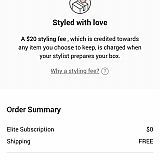 This place is a total scam, and their customer service is a joke. When I placed my order for the "Elite Box", it said TWICE plainly in black and white when I went to check out "Pay $0 today!". It did mention that there would be a stylist fee of $20, but was very misleading and unclear about WHEN that would be charged. So I was left totally confused and frankly very p***ed off when I checked my bank account and saw that they had charged me the stylist fee immediately. Seeing as how I had just spent my entire paycheck on Christmas, it caused me to incur an overdraft fee with my bank. I called customer service (after having to do a Google search for their phone number; apparently they don't want people to be able to easily get ahold of them for obvious reasons) and spoke with a woman named "Tiny". I told Tiny about my confusion with the charge seeing as how it said that there was $0 due at the time of the order and that I needed them to cancel me immediately and issue a refund because they were going to cause my bank account to overdraft and explained that there are fees associated with this. Rather than apologizing and offering to fix it immediately, this woman just went in circles with me trying to "explain" the styling fee. I had to tell her at least twice that I didn't need her to explain, I just needed her to fix it. I even at one point told her that if she needed to escalate me to a manager that would be fine and she just flat out ignored me and kept trying to "explain" why there was a fee even though it tells you that you don't have to pay anything up front! Eventually I just had to stop her and tell her I would file a claim with my bank and write a review on every website I could find to warn people about the bait and switch and hang up. If you're going to charge a $20 fee, you need to tell people WHEN so that they can expect it! Not, "Pay $0 today!" and then charge them the next day! Worst subscription box experience ever. BUYERS BEWARE!
