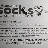 Because of this I incurred an overdraft charge and the socks went to our previous address. I communicated 3 times to no avail. So now I am without the socks and an overdraft charge. I will never do business with this company again. Be aware and cautious when ordering from Affordable Compression Socks!