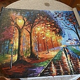 My husband and I returned after walking in our park and he showed your site with Afremov's paintings. We ordered two paintings at once. Emotions are simply overwhelming. The rustle of falling leaves and the mirror of puddles, the scent of wilting foliage and dripping rain. Thank you for your paintings.