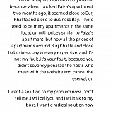 They don't reply to my messages, and I say to them, "Please someone from your team contacted me, but no one contacts me, and every time they message me, we will try to solve your problem as soon as possible. This problem has been there since Tuesday and until now, they have not found A solution for me.They sent apartments that are very far from the location of the apartment.which I booked and they want me to book one of the far apartments.I am asking for an apartment at the same address and I will put all the pictures of the conversation that prove my words.
