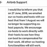 The program that allowed third parties to be paid a small fee by customers for helping an owner host them was canceled on August 1st of 2018. The ONLY notice sent was an email on June 27th, before I or the owner started co-hosting.