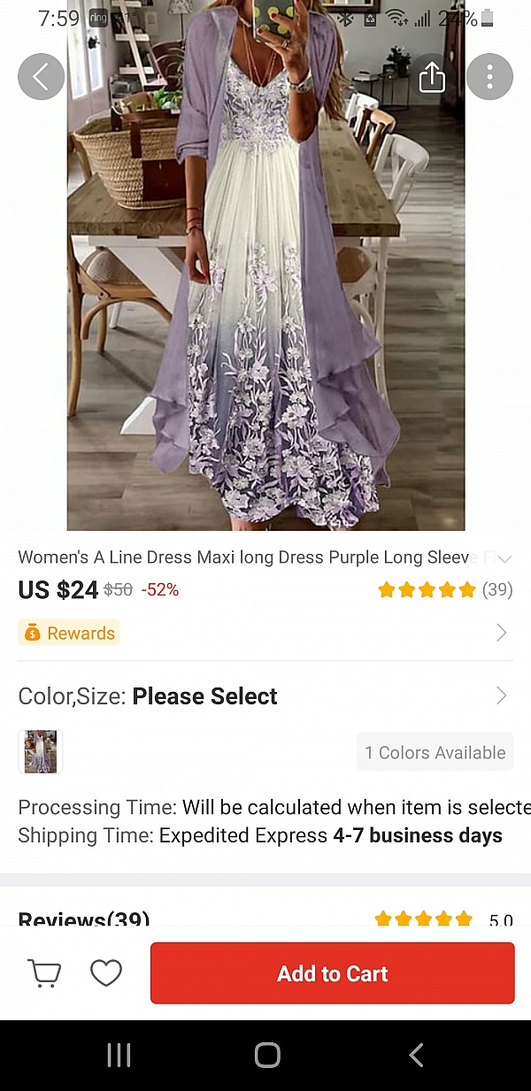 I ordered a black dress with purple flowers on it as advertised, but received a black dress that may have had purple flowers, but nowhere near what what I wanted. The original dress was absolutely beautiful, however the one sent was totally disgusting. Also, the size ordered according to measurements, was too tight, especially in the chest area. The need to send what us ordered without substitutions and make sure these are sized/marked properly. Very unsatisfied.