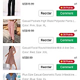 One of the items – the t'shirt – is of a different material as described AND stained. The ordered dress is sewn very poorly and the size is not as described. I ordered L and it should have 108 cm bust but it is in reality only 82 cm.