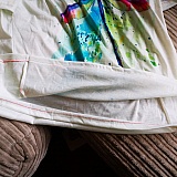 Surge thread hanging off garment. Thin material and three sizes too small. Dont waste your money on these clothes