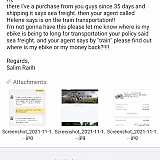 The company is not trustworthy, the shipping says on Alibaba sea freight. And my agent says shipping via train. From China. And she approved my ebike as received? And I haven't received it** So now I'm desputing with PayPal to get hold of them! I hope! So beware even on Alibaba says trustworthy but is not it could be fakes company in China! Likes this one try to scam any of you. Like me very bad experience. Now more the 60 days and I haven't received my ebike. She keeps saying is almost in Europe! What such lie.