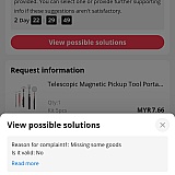 Order#************** (MYR 7.66) arrived with missing items. Instead of resolving properly: