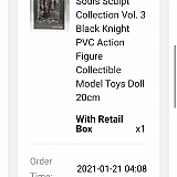 You can get scammed fairly easily on this site. I received the wrong item a red cloud necklace instead of the 20 cm Black Knight that I paid for. I got rid of the packaging of the necklace and AliExpress made no attempts to follow up with the seller. They just denied a refund. Use another website if possible. Their cheap costs come at a price: time and reliability.