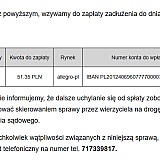 Dopiero 8. 01. 2026 odezwała się do mnie firma windykacyjna, informując, że mam do zapłaty 51,35 zł i że mam czas tylko do tego samego dnia, inaczej sprawa trafi do sądu. Byłem kompletnie zaskoczony i nie wiedziałem, o co chodzi, bo wcześniej nie otrzymałem żadnego maila ani informacji z Allegro.
