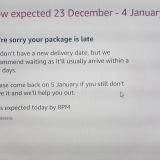 Today is Friday 22 December and some family are visiting from the other side of the country and we are having an early Christmas as they are only here for the day. On Sunday I ordered a number of items from Amazon. Being a Prime member I arranged for delivery today and took the day off work to wait for the parcel. Guess what? They will now deliver it 'before 4 January' - they can't / won't give me a reason and will not commit to delivering tomorrow so I have no gifts for my family. I am seriously frustrated and upset and will be seriously embarrassed tomorrow.