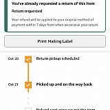 Vervolgens verzand ik in een idiote mailwisseling waarin Amazon stelt dat ik een gebruikt artikel heb geretourneerd (niet waar), zij deze hebben weggegooid en ik alleen mijn geld terugkrijg als ik het bestelde artikel retourneer. Wat dus al lang gedaan is (maar door Amazon weggegooid). Ook diverse mailen gemaild dat het bestelde artikel geretourneerd is, incl foto van de slechte kwaliteit.