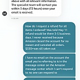 I have called Amazon over 10 times and spoken to them by email phone and customer service chat. At this point I'm fully confident I will never be refunded my money and never receive my packages. Their explanation "I did not agree to terms". Perhaps I forgot to check off one box but that still doesn't justify canceling my orders and keeping my money!