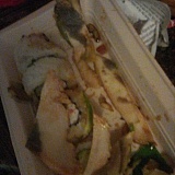 I purchased some Wild Blue Unakaba (labeled as crunchyroll brown rice on the receipt) sushi, and after eating for pieces, I discovered grey mold on every piece just above the rice. On the meat, on the avocado, all over it. Make sure you check every angle of your box before buying it.