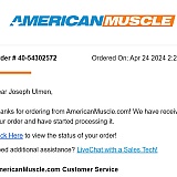Called UPS, they said American Muscle did not have the package ready till Apr 24 at 8PM, which was past pickup time, with a confirmation number of when it was picked up. (see Photo 1)
