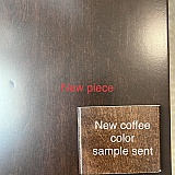 Ordered two pieces in cherry wood. Had color samples on cherry sent to me. Chose coffee as it was a close approximation to another cherry piece I have. The coffee stain sample still allowed the beauty of the cherry to show. Received pieces. Much darker and veins of wood barely visible. Amish Outlet sent me a new coffee color chip to compare. Amish Outlet response's "The stain is darker, but is a good representation of 226 Coffee". If I had wanted a darker stain, tobacco or espresso, for instance, I would have chose that color and probably would have chosen a less expensive wood species