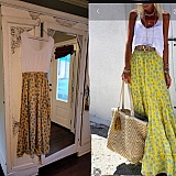 The yellow skirt is attached to the white tank top that CANNOT be untucked. The icture is a flower cotton blend. The yellow skirt does not have the attached yellow material around the bottom.