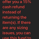When you request a return, you get an email that you can bear all costs to return to China (even though shipped from US location) or a 15% refund. They have the gall to suggest you can use the 15% toward purchasing the right size, even though they are clearly at fault. Just delete from email. Their pretty pictures of someone else's clothing suck you in, but that is not what you will get if you order.