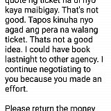The agent is offering a lower fare. Before we made a deal he offered and push you hard to get the insurance. I declined it. They took money from my two cards cause I split the payments. They said they will email the ticket. When I woke up opened my phone and checked my email. I didn't get any. So I called them they never answered so I sent an email. Good thing they replied and this is the robbery part. They wont issue the ticket cause the airlines wont allow it. Are you kidding me, you are selling a ticket that has no approval from the airlines? Where in world you come from? You withdrawn money from my cards and you will not issue the ticket. You are robbing me. It's not my fault why the airlines wont issue. Why are you selling ticket with no permission from the airlines. You are a liar, making false advertisement and robbing your costumer. Good thing you return my money. But still you are a liar, a user and fake advertiser. Don't ever allow this agency to victimize another costumer like me.