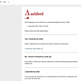 Today I received an email "Ashford Delivery Confirmation - Response Required (Order ID: w00********35)"