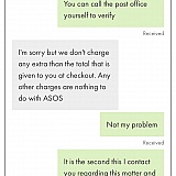 3. I was not informed of any delivery charges until I received an email from the post office saying I would have to pay cash on delivery. ASOS promised me free delivery because my order was over $75. I had to pay $15.50 at the post office.