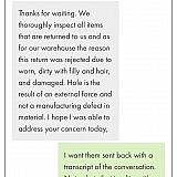 After being insulted by a returns agent that has no clue about an item because they cannot see the item, I have decided that ASOS are rude, immoral and definitely should not be trading to the public at all if they cannot sort their attitude. If you return something be ready for personal comment in your inbox. Extremely unprofessional and rude. Would like to point out that due to having cancer treatment in the past, our home is not only clean but sterile... we had to be to keep our child safe when on chemo. ASOS are disgusting to make allegations and I invite any inspection of my home