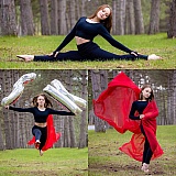 I got a black matching set from Astoria to wear to dance classes! I am beyond happy with my purchase and everyone in my class loves my set! The top fits perfectly down to the holes in the sleeves for my thumbs! The sizing was perfect and the fabric is study breathable and stretchy! The pads inside the bra are breathable and the perfect fit!