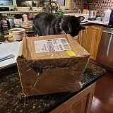 Device a day late arriving in completely destroyed and taped box. Product seems ok, though no padding and parts thrown in.