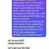 So I thought that I could save a few bucks and switch from VZW to ATT. Worst decision ever! First off, you can't contact ATT and expect to spend 10 or 15 minutes on the phone. Every call to ATT customer service is at least 1 hour, if not longer. Every call is scripted B. S.! After several issues with trying to get my new ATT account up and running I got so frustrated that I canceled the order and closed my new account. Now I had just received three new phones that I needed to return so I got a RA# and a return label and shipped them off. All three phones, in the same box. Three weeks later I get a bill from ATT showing that I only returned two of three phones and that I owed them almost $500! I then contacted customer service via chat and after an hour the representative said that the bill was sent by mistake and not to worry about it. I was also told that my account had a $0 balance and it was closed. I requested this in writing and received an email confirming this. Two weeks later I notice a charge on my bank statement from ATT for $468! Called again (yes, another 90 minute call) and was told that they would have to "investigate" the situation even though I had proof of recent customer service chat. So now I must wait two weeks for this investigation to conclude and lord only knows what will happen after that. There was more awful customer service that has taken place with ATT but I am running out of space to post. Just do yourself and your blood pressure a favor and do not deal with ATT no matter how much money you think you can save. You can't put a price tag on sanity.