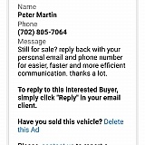 So unimpressed I've had my car uo for sale for but 3 weeks every single Frickn person that replied to the ad was a scammer it's ridiculous. Needles's to say I took the car off of the site cause I've just had enough of that many other places to post. You get the odd couple other places but not 3-6 a day and everyday. I think out of the 50 replies there was only 2 real people and they came out basically asking for the vehicle for free. Like would you go to the dealership and ask for a 30 thousand $ vehicle and say oh would you take 2 thousand. Like f $##$ off COMPLETE WASTE OF TIME AND EFFORT. Ill stick to kijiji and the old school way. I posted a picture of what these people do and say they all say the same thing. You have to be pretty high if you were to fall for there crap