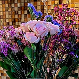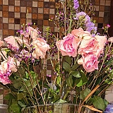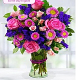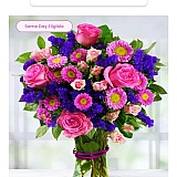 I ordered "She's got Style She's got grace" arrangement. It was advertised as a.tall vase FILLED with big pink roses, small pink roses, tons of purple statice and smaller gerbera.looking pink daisies. What was delivered was a short round vase filled with a lot of green shrubbery, 3 large.pink roses, twk clumps of phlox, carnations and some smaller hairy looking flowers. I ordered the size "as shown" which looked full and vibrant" when I called to state my disappointment they said that the flowers are to be close to what is shown but will not be exact. They actually name the flowers that will be used in the description. That is not what was delivered. I will not be using them again. Go elsewhere. I could have picked this arrangement.myself.from my yard...