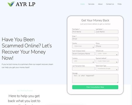 AYRLP.COM is a progressive company focused on executing chargebacks and recovery of wealth/resources lost via internet scams and fraud. We noticed that with the growth and publicity of binary options, cryptocurrencies, and Ponzi schemes, innocent people have lost millions of dollars to malicious companies, hence, the birth of AYR LP to help unfortunate victims get their money back. However, In AYR LP, every stage and procedure of retrieval is systematic, we go through legal processes which involve financial sector experts who know and follow the means to help recover your funds within a short time. The process are easier, faster and better.