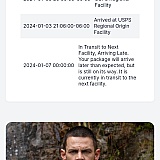 In transit to the next facility, Arriving Late. Your package will arrive later than expected, but is still on its way. It is currently in transit to the next facility.