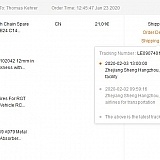 Nun hängen zwei Bestellungen seit Anfang Februar in China fest. Das Tracking hat sich seit dem 6. Februar nicht mehr geändert.
