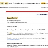On May 6th, I received an email that appeared to come from BofA with the subject line "Security Alert: Your Online Banking Password Was Reset". However, I was able to go online and get into my account, which suggested that this was a fraudulent email. Still I called BofA and spoke to someone about it. They suggested I forward the email to *******@bofa.com. That was the last I heard of this until two days later after $27,200 had been stolen from my account. First, someone transferred $7200 from my credit card cash advance line to my checking account. Then, someone went to the branch in Temple TX (my account address is in MA) and was able to take $9400 and $8400 from a teller in two transactions that day. The following day, they went to a branch in Webb Chapel TX and took another $9400. What I later learned was that someone had created a second username and password and linked it to my account, WHICH IS NOT THE SAME AS SOMEONE RESETTING MY PASSWORD! Nothing has happened with the fraud claim other than for the credit card division to deny the $7200 claim since the transfer had gone into my checking account. Therefore, that $7200 is back on my card and is accruing interest! When I tried to speak to a fraud inspector about this, I was told I could not, after which Xavier from TX hung up on me. Has anyone else experience this Password reset email when it was actually a new username and password added to the account?