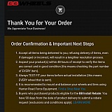 The ease of ordering form BB Wheels was great. The pricing was very good I'll be back to get tires for my truck. This order was a gift for my sons car. Now we wait for the items to arrive.