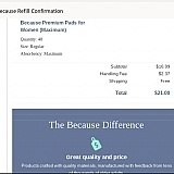 I can't thank this business enough for providing me with the support I need. I have tried many incontinence brands in the past, but Because seems to get it right on the dot from the fit to the material! When I chose the wrong amount in my trial pack, their customer service team went beyond my expectations in helping me correct my order in a timely manner and making sure the product I chose was correct for my lifestyle. I received my products in the mail fairly quickly and conveniently. You guys have earned a happy and returning customer!