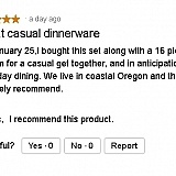 On January 25, I ordered two sets of dinnerware that I thought would compliment one another. They are the same pattern, one blue, one white. The blue set arrived intact but the white set had a broken dinner plate and a broken salad plate. I emailed customer service on January 29, the day that they arrived and asked if I needed to return the entire set for replacement or, just the two broken pieces. I received an auto response saying that they would contact me within 48 hours. When I hadn't heard from them by February 1, I emailed again and received the same auto response, but no one contacted me. Yesterday, February 8, I left two reviews- one positive for the blue set and a less positive one about the white set with the broken dishes. They published the positive review right away, but today, I received an email asking me to resubmit my review on the white set. They highlighted a part of my review in their email to me so I assume it was the part they had a problem with. (Please see photos.)