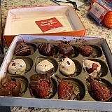 The chocolate on most of the berries were broken off in pieces. Of course, I still ate them and they were good, but had to pick up the small pieces to eat with the berries.