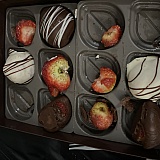 The chocolate wasn't dipped or attached to strawberries. Couldn't tell they were decorative at all. Taste was just 'okay'. Needing to eat with spoon to scoop chocolate & strawberry. Recipient felt bad for me, so no picture. I've ordered many times with this being first issue. Will still order again and be sure to get pictures!