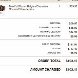 If I could give less than 1 star I would. Delivery of strawberries for Valentines day moved to the 15th, with mo notice to me at all. Calling customer service on Valentines day was a waste of time. I just got a busy signal when supposedly being transferred to a real person. DO NOT USE THESE IDIOTS, THEY SUCK! I did get a refund, but it was less than what they charged my card. There are simply not enough negative words, without resorting to foul language, to describe how bad this company is.