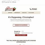Last year made order for the anniversary of the death of my sister-in-law's father. Order never arrived. When I called company they said it was delivered in another state and I basically got an "Oh Well". Shari's Berries did nothing to make this customer happy. Tuesday I made an order for 2 friends who lost their mother. It took 40 minutes on the phone to place this order! It took me 4 (very aggravating) calls for the next 3 days to try to get an email confirmation from the company! When they FINALLY sent it it's only a UPS Status Notification. It is not a copy of my order/total from Shari's Berries! Too expensive to not be protected with a receipt of purchase! I can't stand Shari's Berries way of doing business. Shari's Berries leaves you frustrated... they have bad customer service. It's a shame because I'd rather send chocolate covered strawberries than flowers but believe me, I'll be finding/using another company! I have not yet submitted this review. I'm hoping I don't have to give a star in order to submit my review. If this review has one star it's not by me it's by being forced because I give Sheri's Berries a ZERO rating!