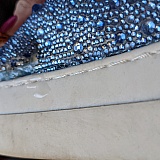 I have been wanting these Betsey Johnson Rhinestone sneakers for some time now. I finally caved and spent the money and got some. Now know they are really pretty shoes! But they must be cheaply made. Know that I have only worn them maybe 5 or 6 times to work at the office (receptionist position) and one time shopping. So it's not like I've ran and played sports in them outside. I keep them in their original box when not wearing. These started coming apart at the seams little by little since about the 3rd time of wearing them. I could understand if they were cheap $20 shoes. But they are almost $100 with the tax. You would think costing that much money, they would hold up since they have been gently worn. They sure should NOT be falling apart this soon or at all for that matter. This is a photo of one shoe. The other one has begun to come apart also. Would I purchase again? No!