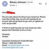 I ordered a product in February and I still have not received it. In March I emailed the company and got a reply 3 days later about them looking into my question. When I got no response I called the company line, and I was told my product was delayed. The date for the delayed shipment has come and passed again, and still I have nothing that I ordered. I don't know why this company does not give updates, and if you are curious you have to search order status yourself. Mine has said "unfulfilled" since February. They never have sent an email saying status is delayed, or even offering a "do you still want this product?" And you think, I should cancel my order, and the response is I was charged immediately for the product and I have already paid it off months ago. But yet here I sit, with nothing I have purchased. I would suggest buying from Macy's or a department store if you really want Betsey Johnson. This company doesn't care if you get what you ordered.