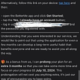 Answer: Hello! Thank you for sharing your concerns with us. In order to clarify the situation, we would like to assure you that we have nothing to do with any scamming or fraudulent tactics. Moreover, our product cannot be purchased without the user's explicit consent. BetterMe is a leading behavioral healthcare company with over 100M downloads, available in 190 countries. We are proud to have over 7M followers across social media platforms. Nowadays there are many companies we may not necessarily like but we know well they are not scammers. Internet is full of thousands of results saying the opposite. But it is mostly a matter of personal preferences and common sense. At the moment we are providing our customers with apps for mobile devices. The idea behind it is the convenience of having access to your plan at all times, wherever you are. In order to see your plan, you simply need to open the app. BetterMe really got you covered with all the tools you will need to get fit in one place. Workouts, Meals, Fasting, Calorie-, Water- and Step-Tracker, – you've got it all. On top of that, your unique customized plan, supportive community, tips & articles as well as a super-helpful customer care team, will definitely bring you closer to feeling and looking your best in no time. Kind regards, Team BetterMe
